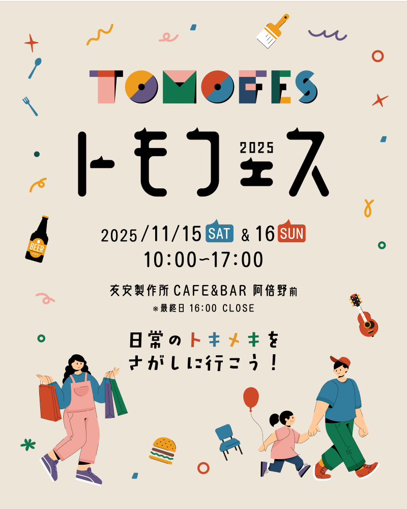 2025年11月15日(土)~16日(日)、大阪市阿倍野区の友安製作所Café&Bar阿倍野にて、