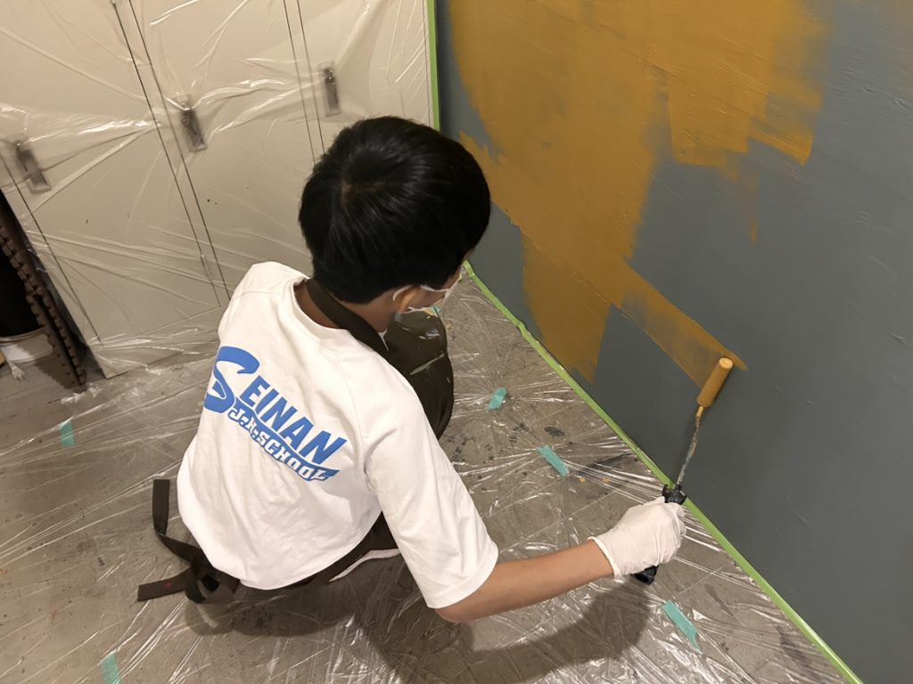 初めて扱う塗料に戸惑いながらも、ローラーの角度や塗料の量に気をつけて丁寧に塗り進め、徐々にムラなく仕上げました。