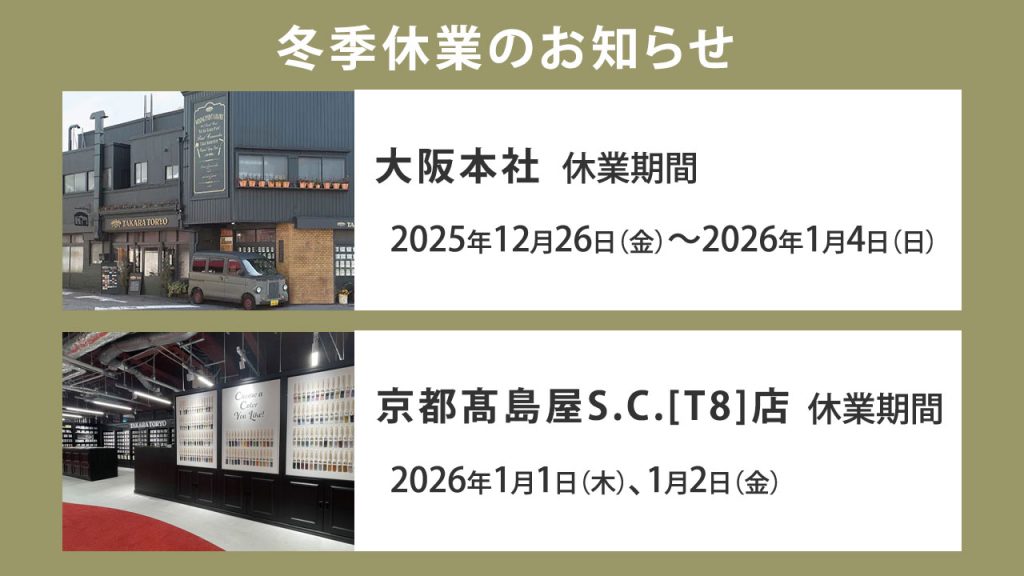 京都高島屋S.C.[T8]店 休業期間:2026年1月1日(木)、1月2日(金)
