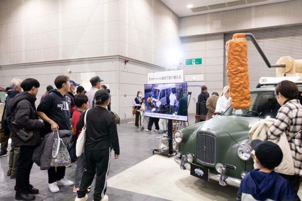 ブース内で掲示していた「2万円でクルマを自分で塗り替える」というメッセージにも多くの方が反応され、「塗料と道具でこの価格は驚き」「こんな方法があるなんて知らなかった」といった声が続き、DIY全塗装への関心の高さがはっきり見えました。
