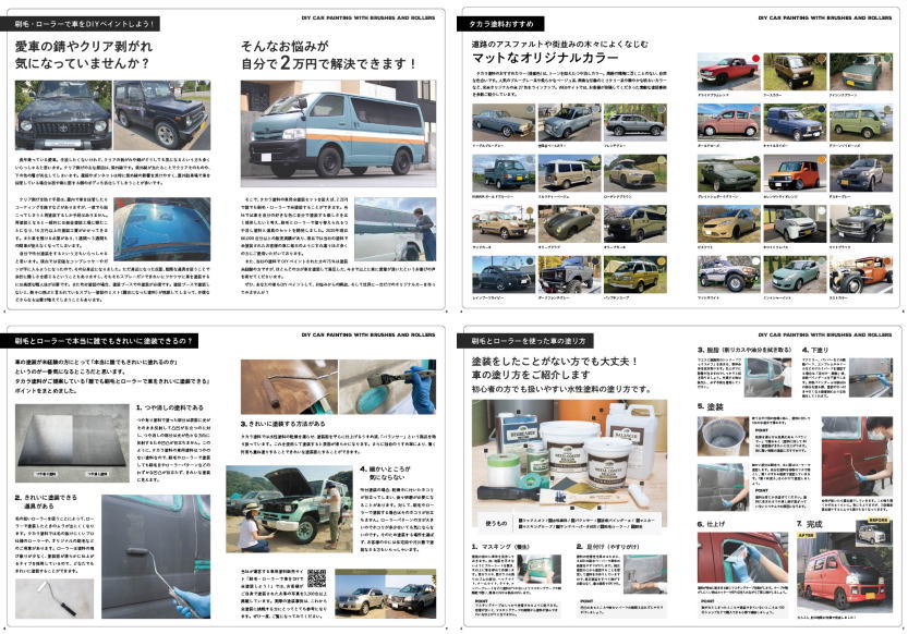 問題提起、なぜムラにならない?、色のラインナップ、簡単な塗り方やQandAなど盛りだくさんに作っています。これ一冊あれば塗りたくなるような内容です。